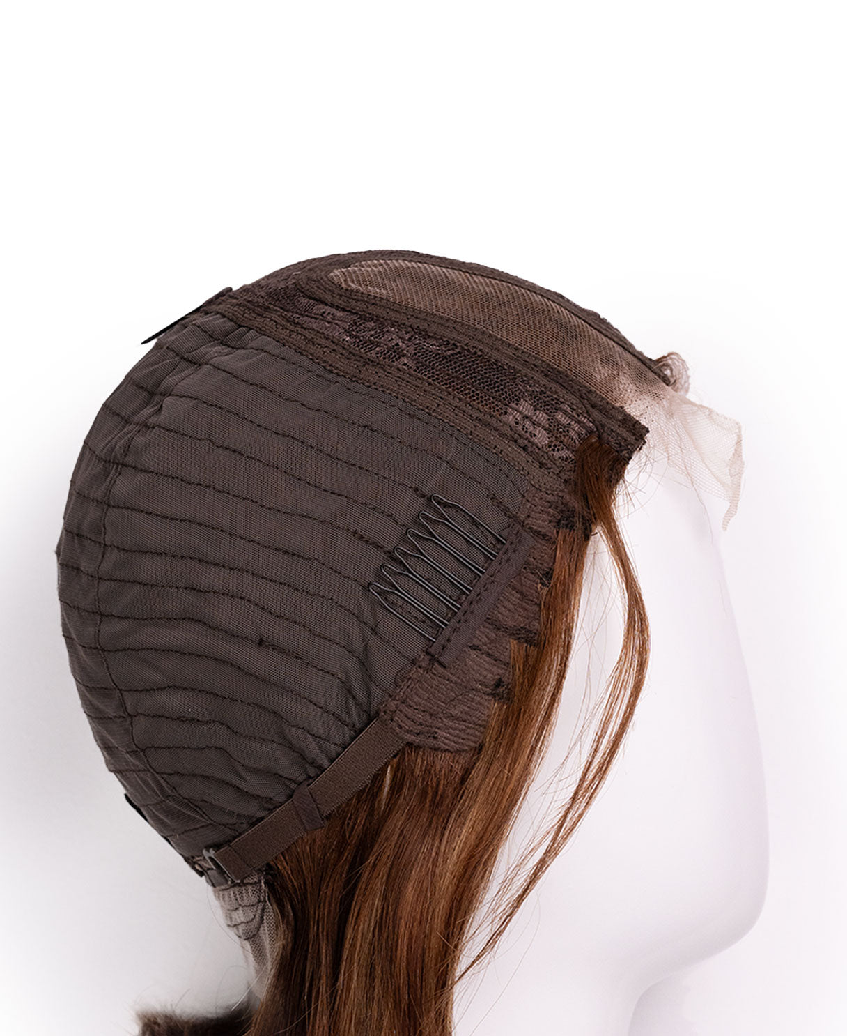 Full lace wigs are manufactured with a base that is made of lace. Individual hairs are then sewn into the lace. The first time you use the wig you need to trim and easily customize the lace to your desired hairline.