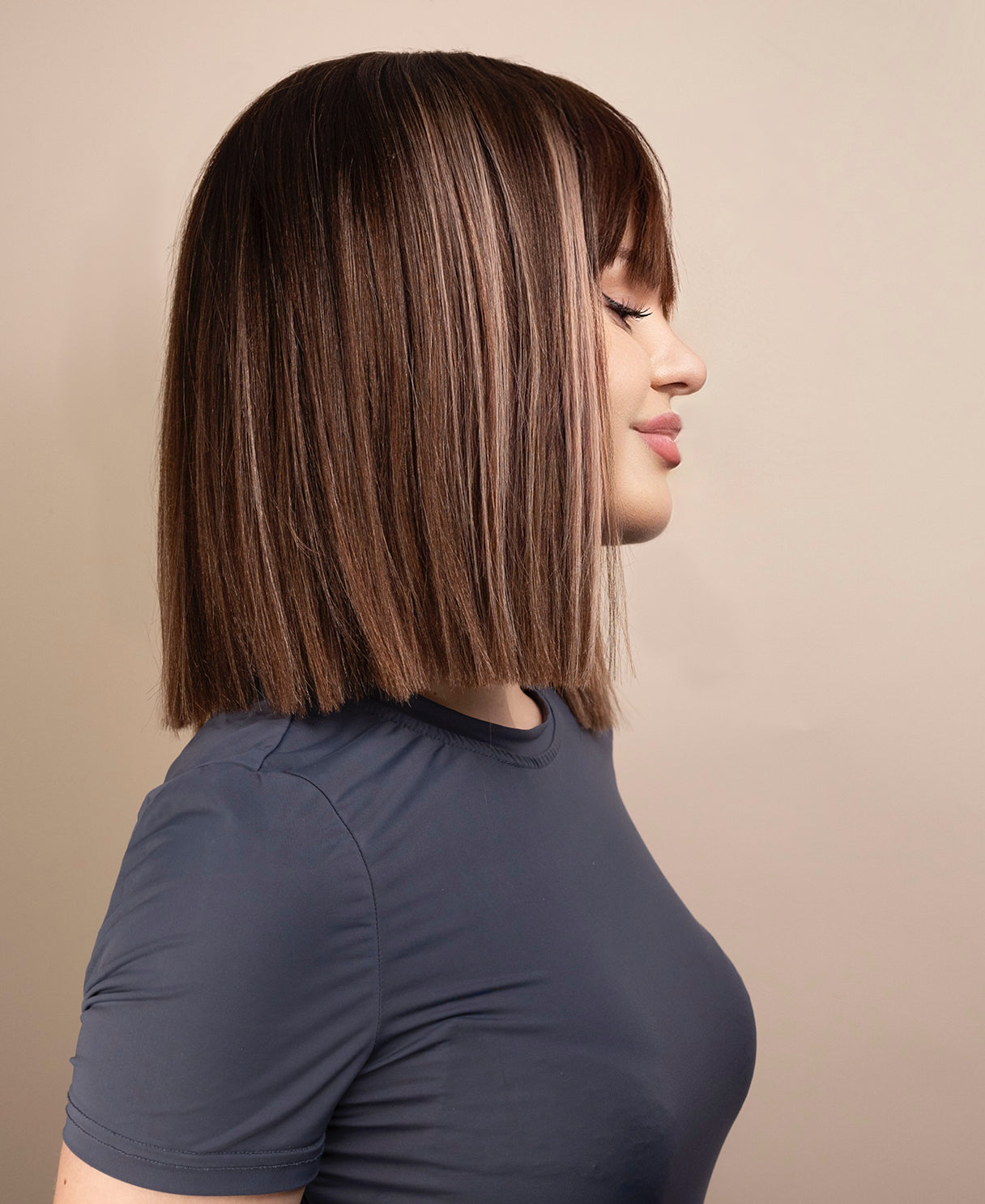 bob wig with fringe - 12" highlighted ash brown.