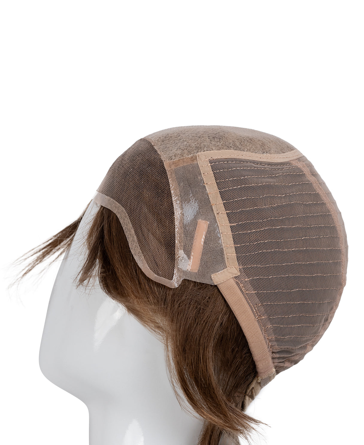 Full lace wigs are manufactured with a base that is made of lace. Individual hairs are then sewn into the lace. The first time you use the wig you need to trim and easily customize the lace to your desired hairline.