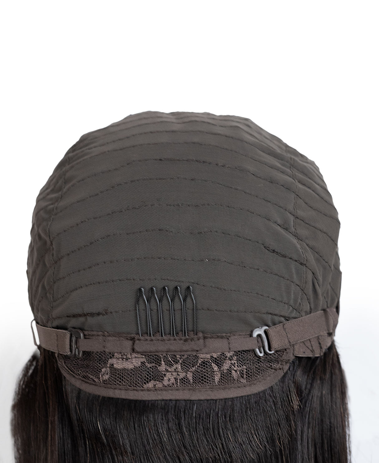 Full lace wigs are manufactured with a base that is made of lace. Individual hairs are then sewn into the lace. The first time you use the wig you need to trim and easily customize the lace to your desired hairline.