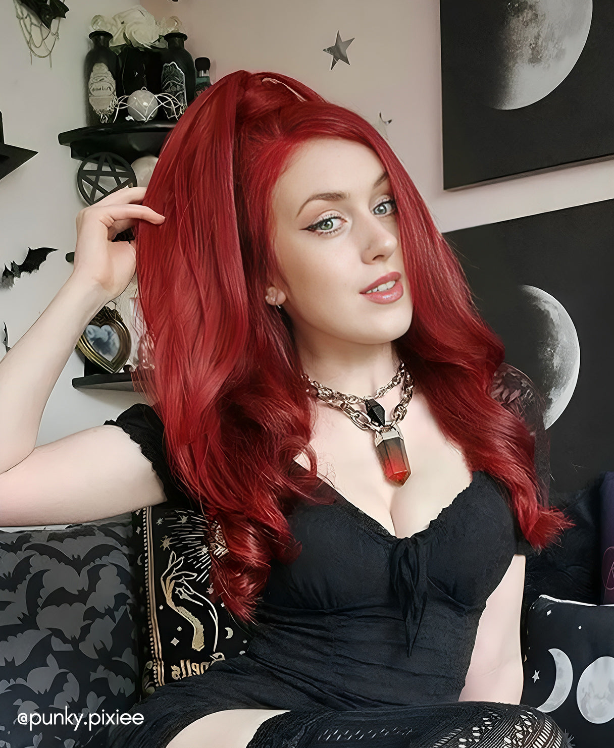 vegan fiber flipped ends ponytail - ruby 17".