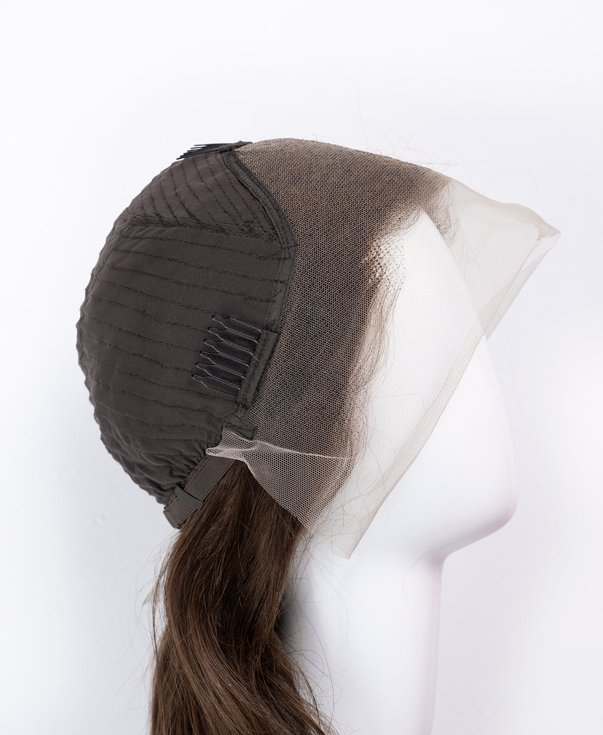 Full lace wigs are manufactured with a base that is made of lace. Individual hairs are then sewn into the lace. The first time you use the wig you need to trim and easily customize the lace to your desired hairline.