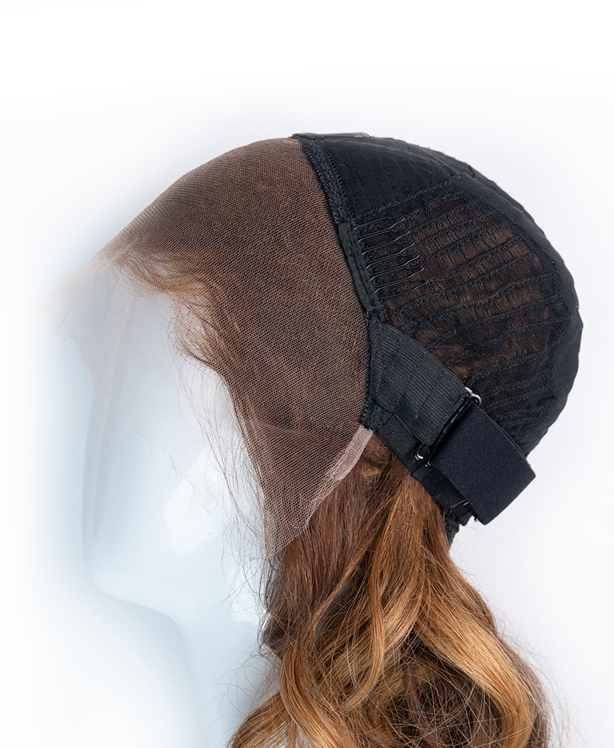 Full lace wigs are manufactured with a base that is made of lace. Individual hairs are then sewn into the lace. The first time you use the wig you need to trim and easily customize the lace to your desired hairline.