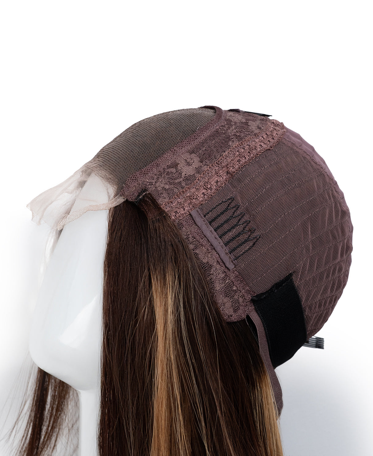 Full lace wigs are manufactured with a base that is made of lace. Individual hairs are then sewn into the lace. The first time you use the wig you need to trim and easily customize the lace to your desired hairline.