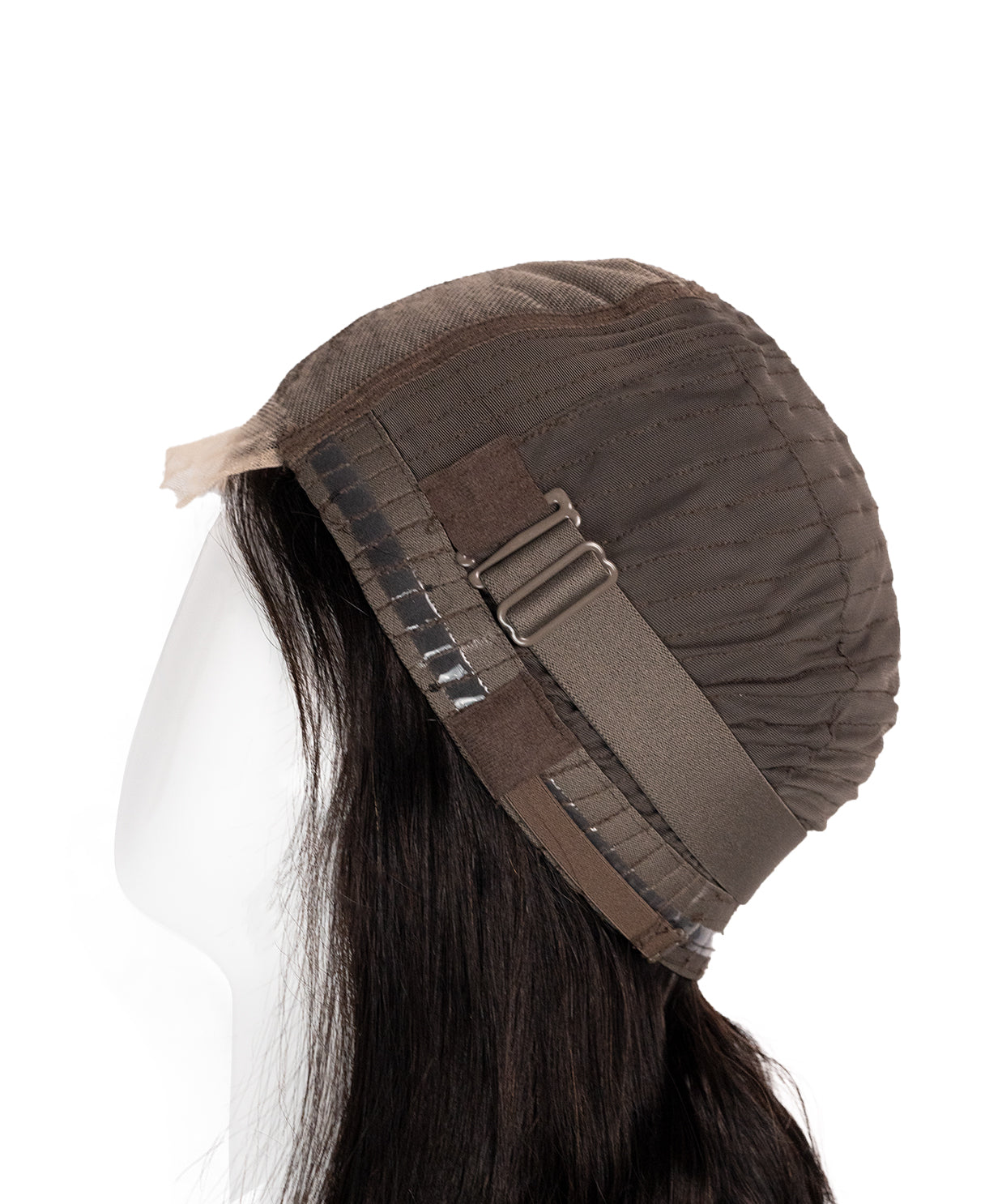 Full lace wigs are manufactured with a base that is made of lace. Individual hairs are then sewn into the lace. The first time you use the wig you need to trim and easily customize the lace to your desired hairline.