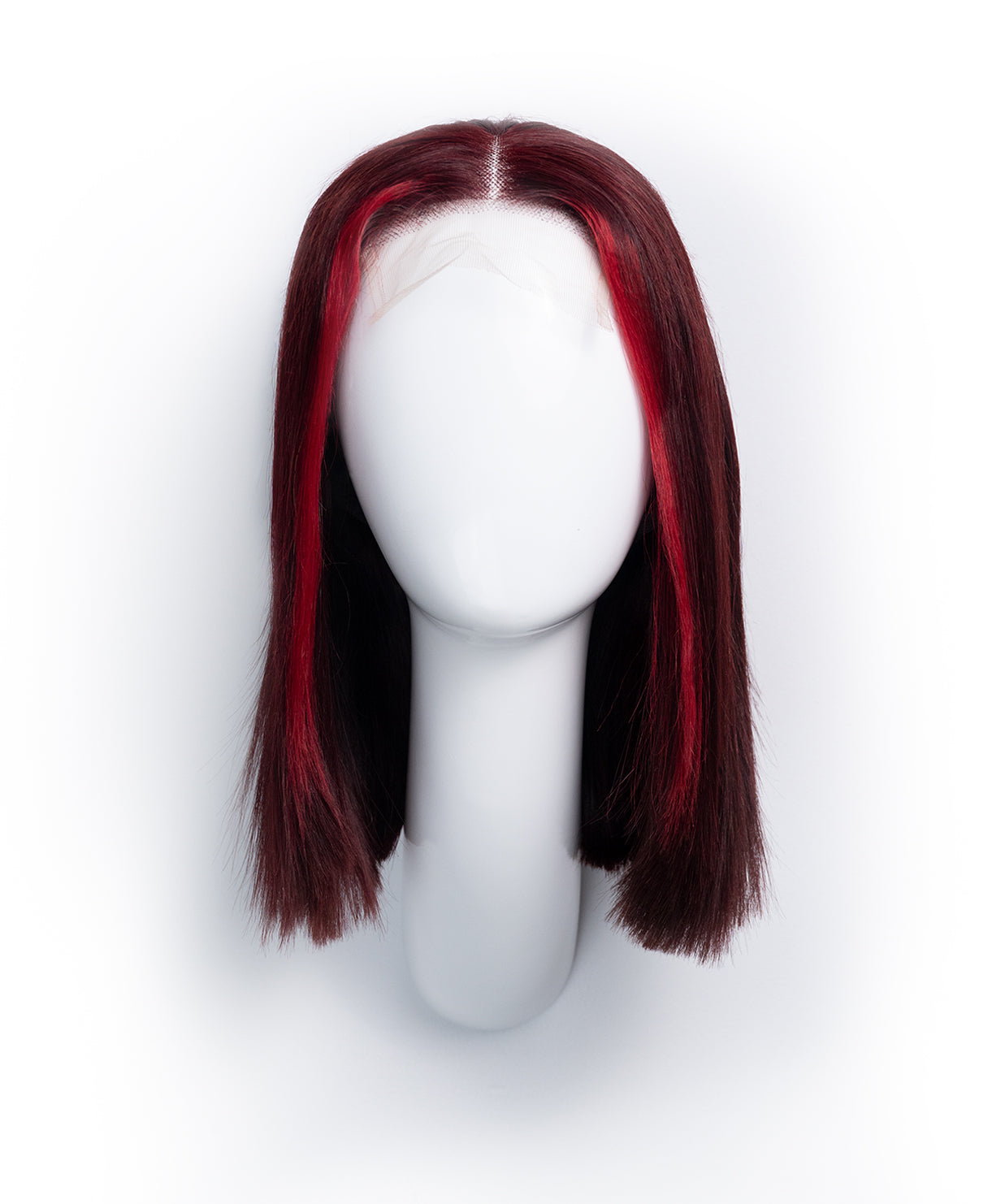 Full lace wigs are manufactured with a base that is made of lace. Individual hairs are then sewn into the lace. The first time you use the wig you need to trim and easily customize the lace to your desired hairline.