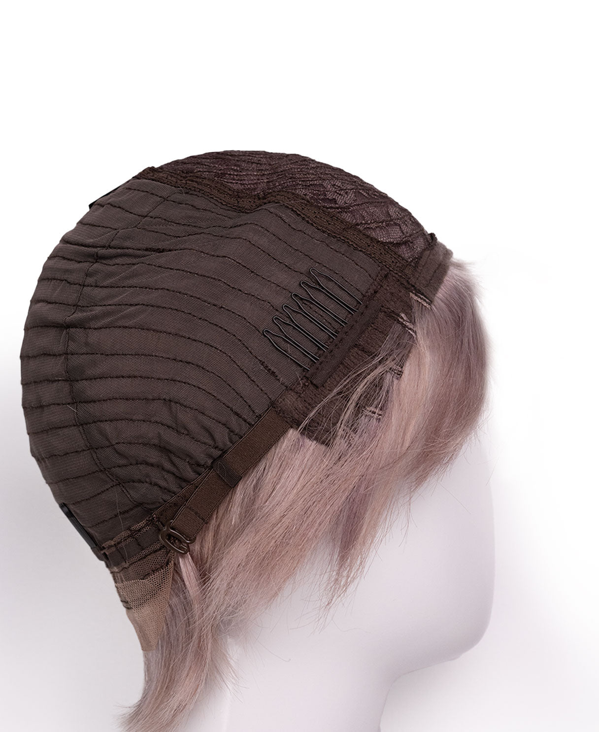 Full lace wigs are manufactured with a base that is made of lace. Individual hairs are then sewn into the lace. The first time you use the wig you need to trim and easily customize the lace to your desired hairline.