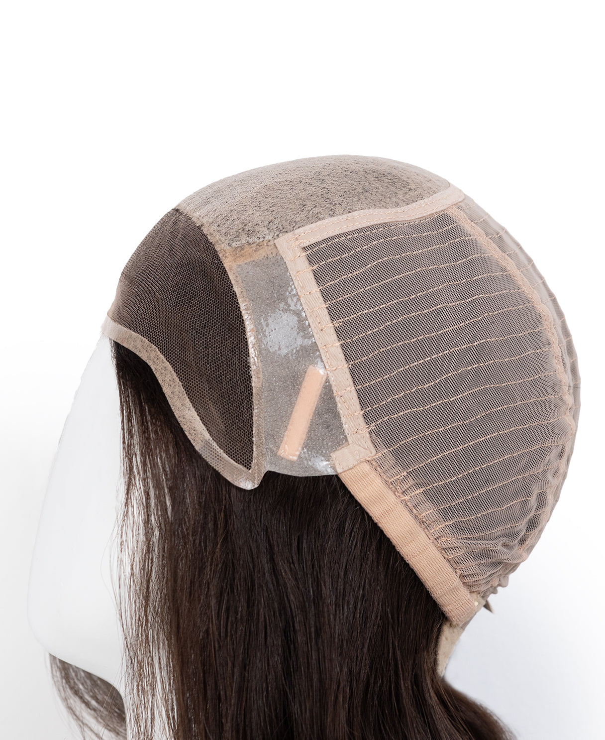Full lace wigs are manufactured with a base that is made of lace. Individual hairs are then sewn into the lace. The first time you use the wig you need to trim and easily customize the lace to your desired hairline.