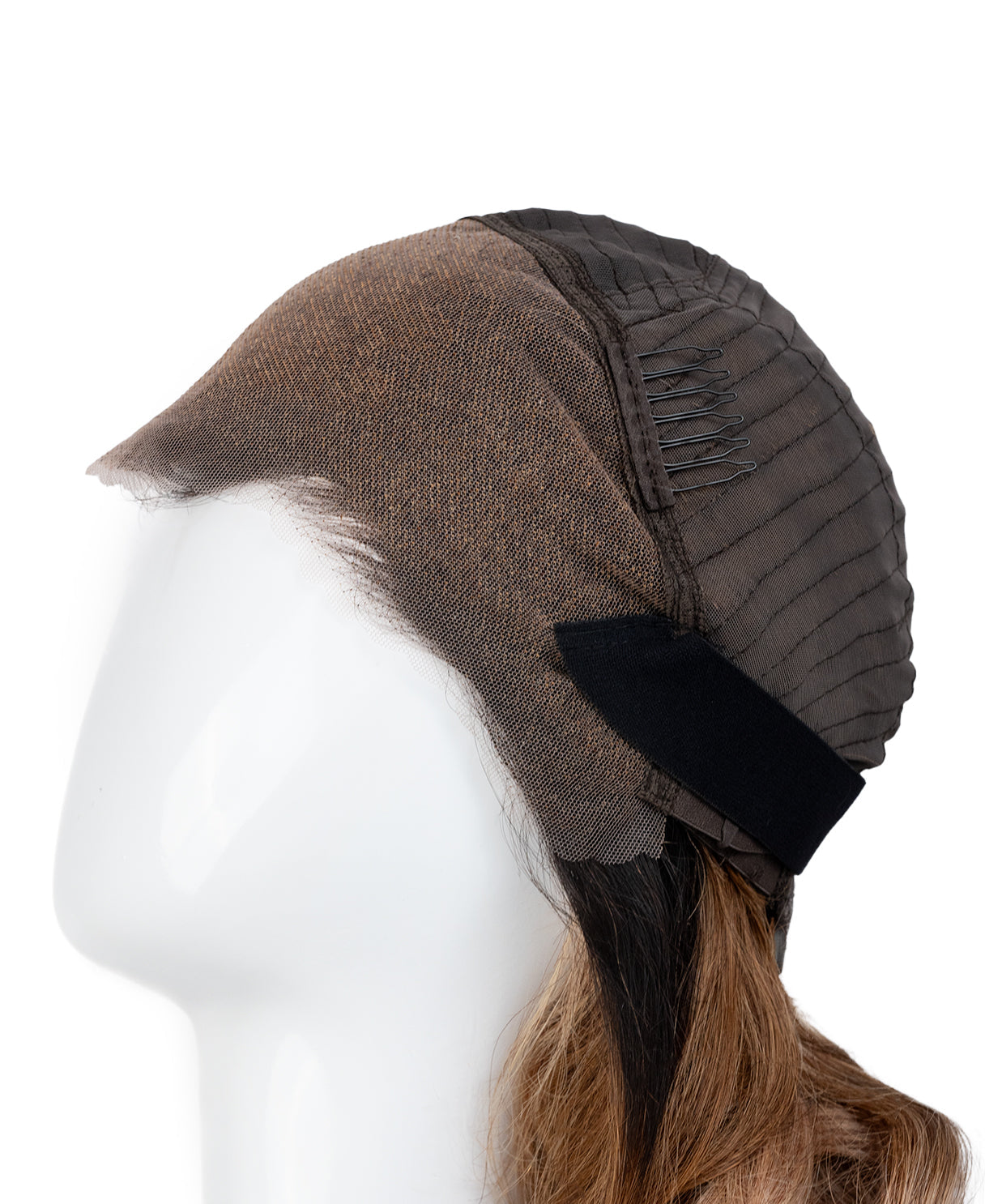 Full lace wigs are manufactured with a base that is made of lace. Individual hairs are then sewn into the lace. The first time you use the wig you need to trim and easily customize the lace to your desired hairline.