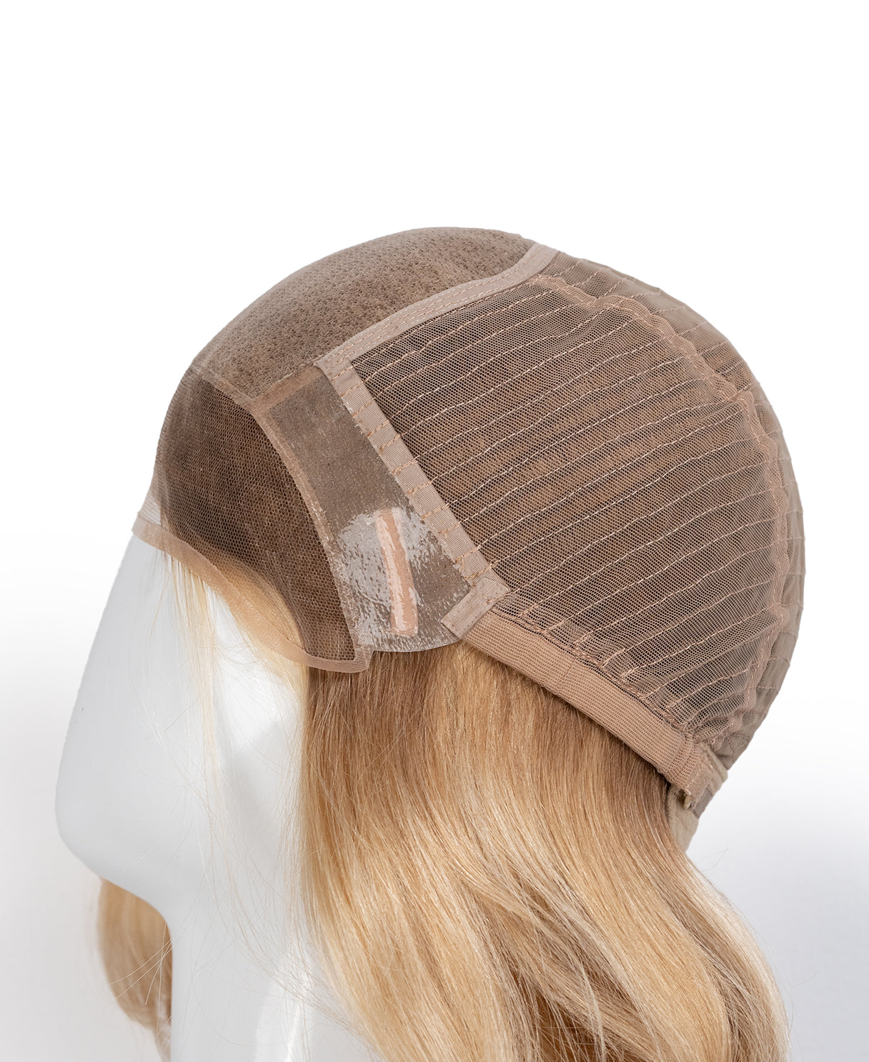 Full lace wigs are manufactured with a base that is made of lace. Individual hairs are then sewn into the lace. The first time you use the wig you need to trim and easily customize the lace to your desired hairline.